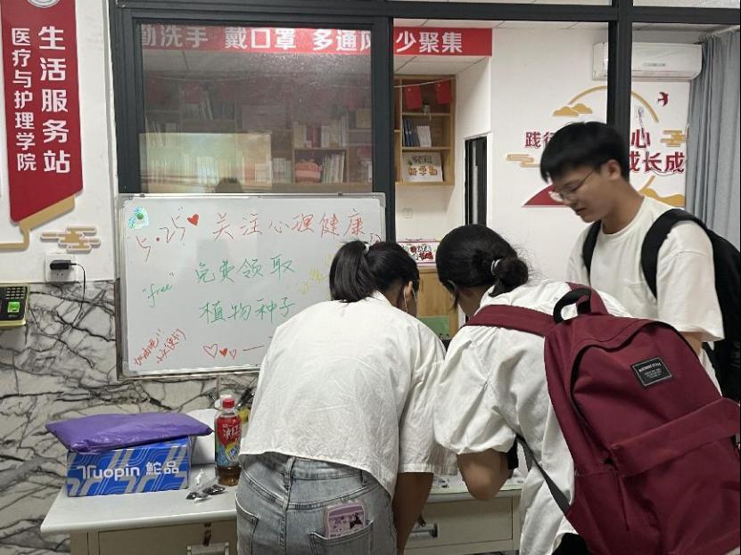 活动当天,在模拟站台宣泄吐槽区域,同学们在气球、卡片上写下自己的郁闷与无奈;通过体验心理小游戏放松身心,疏导压力。beat365中文官方网站“救在你身边”志愿服务队同学在现场进行急救知识科普,通过示范教学让同学们直观的学习了急救知识。同学们跃参与活动,尽情释放,享受青春带来的美好、希望和快乐,现场气氛轻松活跃。本次“5.25”心理健康教育月活动,为同学们在紧张的学习中增加了欢乐,在丰富的校园生活中体验成长。模拟站台活动结束后,身心健康部在一站式进行了种子领养活动,同学们都开心的领养了属于自己的那一颗种子。