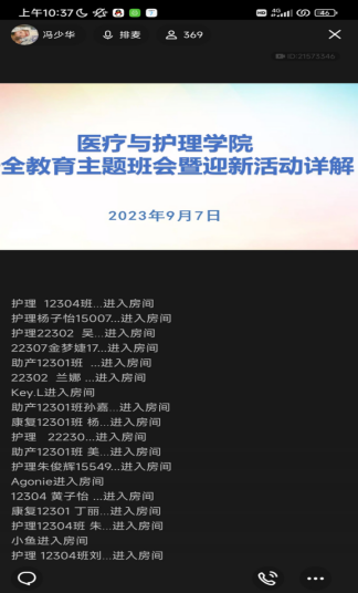 9月7日,新生辅导员冯少华和林友东老师在线上与2023级新生互动,开展了安全教育主题班会,帮助同学们提前了解武汉铁院和医护学院,为同学们安全顺利报到提供指导。