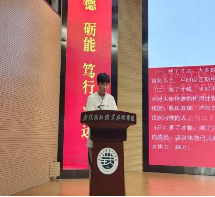 在实践成果分享环节,参与此次暑期社会实践活动的同学分享了他们参与社会实践的心得体会与经验。首先进行分享的是参与“三下乡”暑期社会实践的团队,“救”在你身边志愿服务队负责人雷雯羽分享了“助人、救人”的经验,他们利用自身优势服务社区居民。“医耀健康中国,蔪艾乡村振兴”团队成员孙天成和队员一起走近乡村,进行健康宣教,为创建健康卫生的环境做贡献。“赤心青音”党史教育实践团负责人陈玉洁分享了他们如何学习并宣传党史,他们跨越十三省接力传递讲好家乡的红色故事。