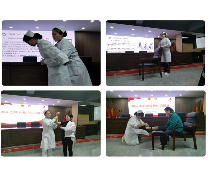 随后,学院“救”在你身边志愿服务队成员围绕“科普健康知识,助力健康生活”这一主题,以专业的知识储备、清晰的动作演示、有效的互动交流,向社区居民科普海姆立克急救法、右踝关节包扎法、外伤止血包扎法以及秋冬季养护等健康急救常识。