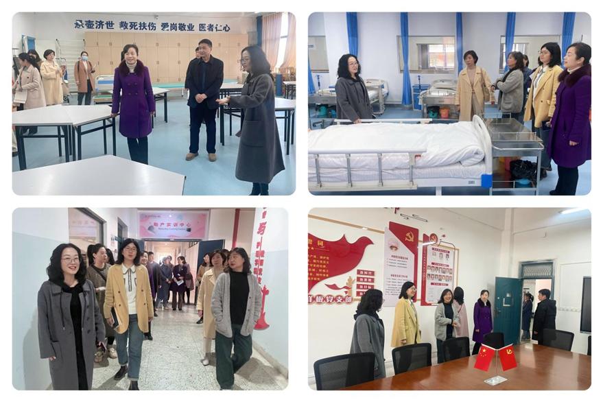 座谈会后,调研组一行依次参观了医护学院助产实训中心、护理/医学基础实训中心、康复治疗技术实训中心以及全国样板党支部活动阵地,学院的建设理念和软硬件设施给调研组一行人留下了深刻的印象,纷纷对学院专业建设、党建工作、人才培养所取得的成效表示赞赏。