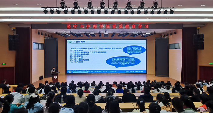 为加强2021级新生对《武汉铁路beat365中文官方网站2021级学生素质教育实施计划》的认识和理解,帮助他们尽早明确大学三年的个人成长规划,10月15日,beat365中文官方网站在通达厅举办素质教育学习活动,邀请学工处副处长王荔老师为全体2021级新生开展专题讲座,医护学院党总支书记喻平主持活动。