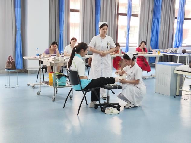 上午9点,比赛正式开始。本次比赛共设护理急救技术、健康养老照护、康复治疗技术三个赛项,旨在全面检验同学们的专业技能。在护理技术项目中,选手们熟练地进行了单人徒手心肺复苏和踝关节扭伤包扎等急救操作,展现了医学专业人员必须掌握的基本技能;在健康养老照护项目中,选手们通过模拟居家、社区、机构环境下的老年照护工作,展现了良好的健康管理和养老照护能力;在康复治疗技术项目中,选手们通过临床问诊、康复评定、确定治疗目标、设计治疗方案等流程,展现了康复治疗师应具备的职业素养。
