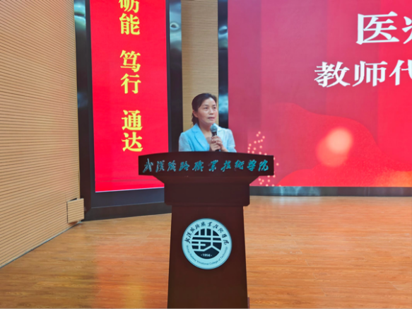 随后,教师代表李军华老师以“行程万里,不忘初心”为主题,鼓励同学们要明确自己的追求与目标,她讲到医学专业的学习会是一个漫长且复杂的过程,不仅要重视书本上的知识,更要通过实践操作与临床实习来锤炼自身的意志力与专业技能,在勤勉学习的同时,也需关注身心素质,以精神饱满的姿态迎接新学期。