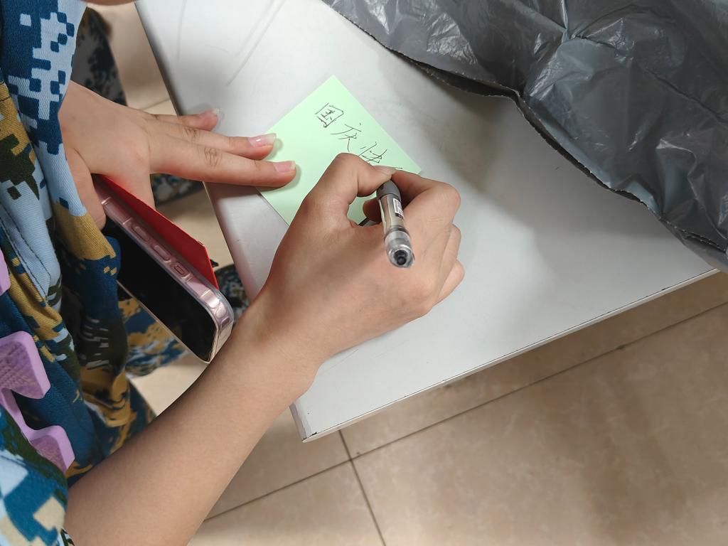 活动现场,有的同学紧握笔杆,一字一句地斟酌,努力将心中无限爱国热情都倾注于笔尖;有的同学则闭上眼睛,默默祈福,随后才郑重其事地将心中祝福的话语写下。“祝愿祖国永远繁荣昌盛”、“感谢祖国母亲给予我们如此美好的生活”、“国家在兴,吾辈亦在行”......这些便利贴,每一张都饱含着一颗炽热的爱国之心;每一句话语,都是一份深沉的爱。