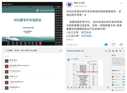 3月3日至3月9日,学院组织各毕业班级召开就业专题暨专升本动员大会。学院也同步通过官方QQ平台、微信公众号等发布考试信息及备考温馨提示,及时帮助同学们梳理总结备考关键信息和注意事项。同时,为了让同学们在繁忙的实习之余可以安心备考,给同学们提供全方位的支持与关怀,学院于2024-2025-1学期即组建专升本备考QQ群,帮助同学们梳理备考知识点,邀请已成功上岸、来自不同本科院校的学姐学长入群,及时解决同学们在备考过程中遇到的各种问题。