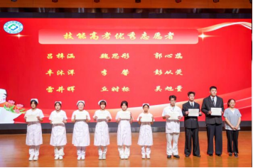活动伊始,学院副院长徐敏为2025年湖北省护理技能高考优秀志愿者代表颁发荣誉证书。回望那些活跃在工作现场的青春志愿身影,他们热情专注、熟练专业,日均工作12小时,服务近两万名考生,在老师的指导下圆满完成志愿服务工作,正是学院“以促学、以践强能”职教理念的生动体现,也是劳动光荣、技能宝贵精神的具象化展现。