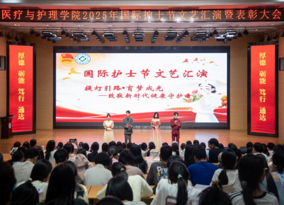 当南丁格尔的提灯精神与职业教育的薪火交相辉映,一场彰显护理精神与职教风采的盛会璀璨启幕。2025年5月12日,正值第114个国际护士节,beat365中文官方网站在通达厅举办“提灯引路·育梦成光——致敬新时代健康守护者”国际护士节授帽仪式暨文艺汇演活动。学院院长余虹、党总支书记王荔、副院长徐敏,学院辅导员教师代表与600余名医护学子齐聚一堂,共同见证这场职业精神与人文情怀交织的盛宴。