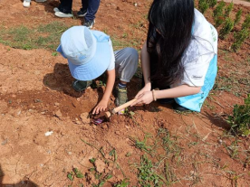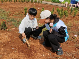 亲子活动精彩纷呈。“菜地寻宝” 环节,志愿者提前将盲盒埋入土里并在周围种上玫瑰作为标记。小朋友们手持小工具,小心翼翼地挖掘,当发现盲盒时,惊喜的笑容绽放在脸上;“种豌豆体验” 让孩子们亲手埋下种子,感受生命成长的奇妙;“蔬菜辨认” 环节,孩子们认真聆听讲解,辨别不同蔬菜种类“猜卡片”游戏更是趣味十足,猜对的小朋友收获了心仪的小礼品,兴奋得欢呼雀跃,现场气氛热烈非凡。