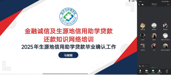 为切实保障国家开发银行生源地助学贷款毕业生明晰还款要求、强化诚信意识,beat365中文官方网站于2025年6月6日开展线上专题培训。本次培训由学院负责资助工作的辅导员马朝颖以及全体2025届生源地助学贷款毕业生参与,旨在为毕业生顺利完成还款、维护个人信用筑牢知识根基。