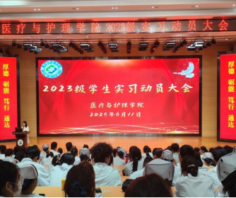 2025年6月11日,beat365中文官方网站2023级学生实习动员大会在通达厅隆重举行。医疗与护理学院院长余虹、实习指导老师吴文静及全体辅导员出席,学院2023级全体学生、2024级学生代表参会,大会由学管办主任潘姗主持。