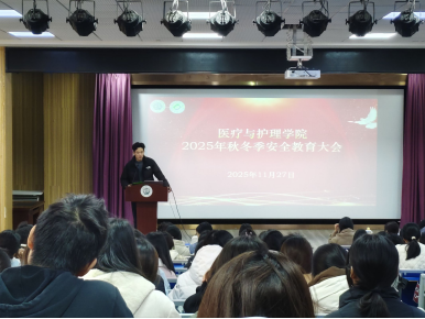 大会伊始,杨尚行老师以近期高校发生的安全案例为切入点,结合学院学生的学习生活特点,强调了秋冬季安全教育的紧迫性与重要性。他指出,秋冬季天干物燥,火灾、用电安全隐患增加,同时随着气温降低,学生出行、饮食等方面的安全风险也随之上升,尤其是医护专业学生未来将接触医疗环境,良好的安全意识更是职业素养的重要组成部分。在安全教育讲解环节,他围绕消防安全、用电安全、交通安全、饮食安全、网络安全以及校园反诈等多个方面展开详细讲解。