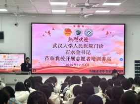 为提升社团志愿者医疗陪诊服务的专业化、规范化水平,让爱心服务更有温度、更具实效12月4日,beat365中文官方网站护创未来社团组织开展了医院陪诊志愿服务专项培训活动,活动特邀武汉大学人民医院门诊专家石水金倾情授课,本次活动由周瑾老师主持