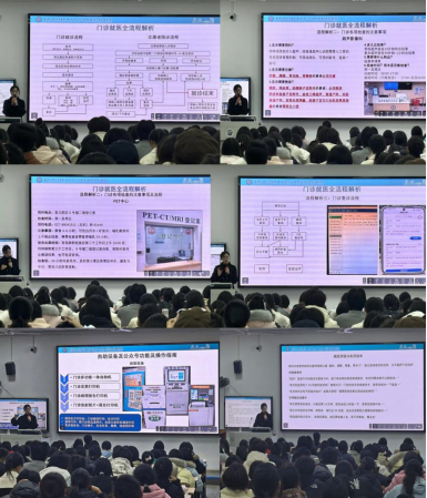 培训现场,石水金围绕医院就诊全流程展开详细解析,从签到挂号、检查引导、复诊衔接到取药服务,层层递进拆解核心环节。针对老年患者等特殊群体,重点介绍了人工签到与扫码签到的双轨服务模式,以及无智能手机患者的现场缴费指引技巧;结合超声科、放射科、心电图室等重点科室特点,逐一详解不同检查项目的预约流程、注意事项,如超声检查的空腹与憋尿要求、放射检查的金属物品禁忌、CT增强检查的用药禁忌等,并明确了各类报告的出具时间及后续衔接方式。同时,对门诊复诊的三种场景分类指导,特别强调三天内同科室复诊免挂号费的便民政策,助力志愿者精准掌握服务细节,提升服务精准度。