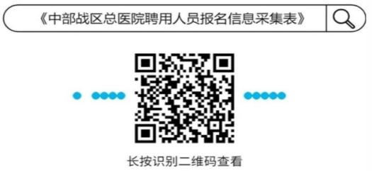 报名方式:应聘者将个人简历(上附一寸免冠照片)、学历学位证书、学网学籍认证报告、执业资格证书、住院医师规范化培训合格证书、工作经历证明等资料扫描件及《中部战区总医院聘用人员报名信息采集表》(扫描下方二维码查看)发送至中部战区总医院人力资源科邮箱zbzqzyyhr@163.com;邮件标题格式为:应聘岗位+姓名+学历+专业。