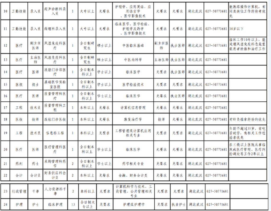 二.医院招聘工作人员岗位