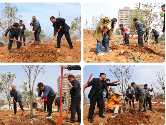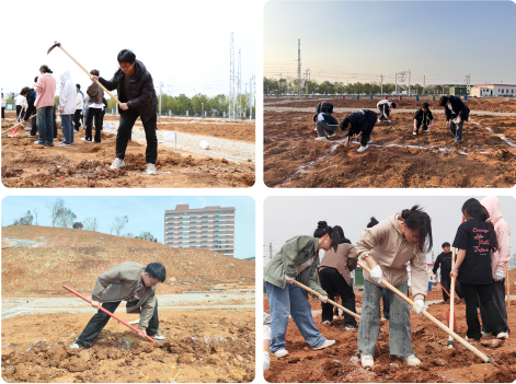 随后,在艾海松副校长的带领下,大家来到农场山顶,开展植树活动。大家分工协作,三五成组,一起挥锹铲土、扶正树苗、培土踩实,配合默契,一派热火朝天的劳动景象。经过大家的辛勤劳动,一株株新栽下的苗木昂首挺立、生机勃勃,为美丽校园增添了一抹新绿。
